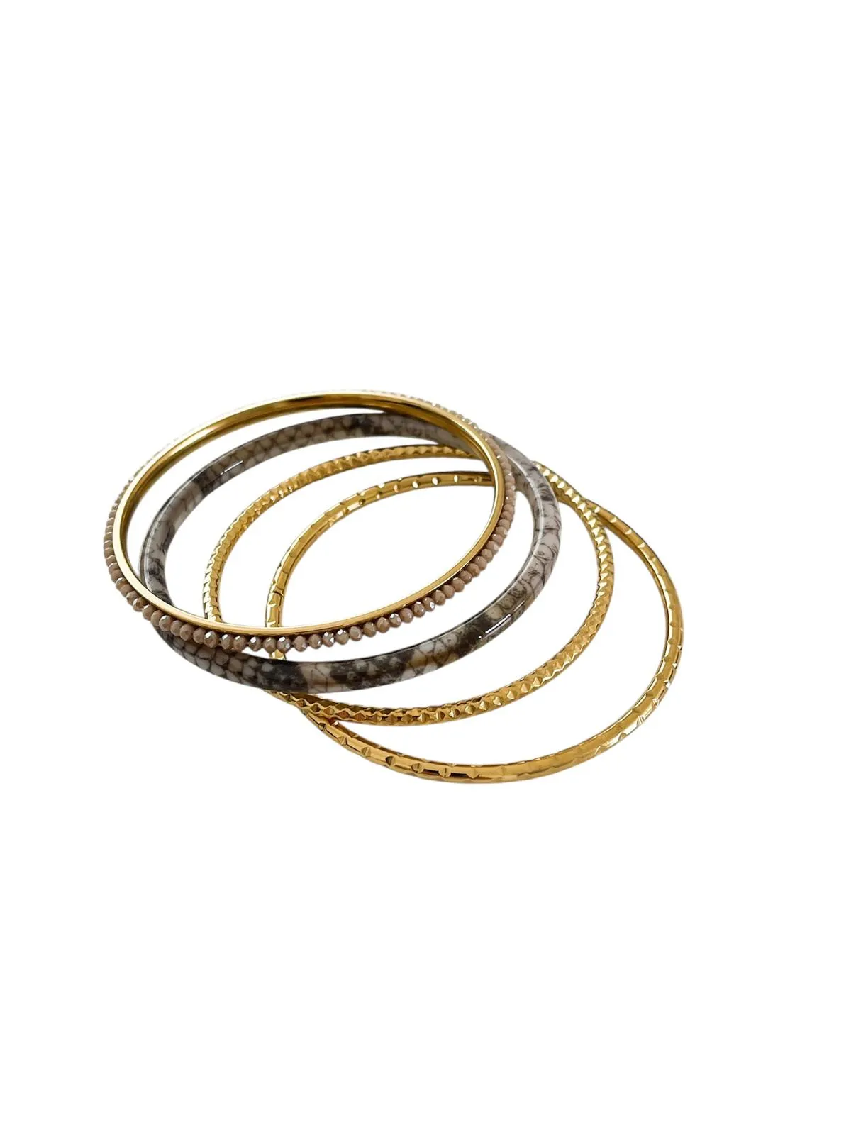 Laissez-vous séduire par ce lot de bracelets bangles marbrés en acier inoxydable, un ensemble élégant qui associe la finesse du doré à la douceur raffinée du marbre.
